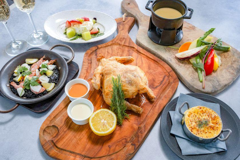 千葉県産の新鮮な素材を中心に、香り豊かなハーブローストチキンをメインに据えたHERB ROASTED CHICKEN。