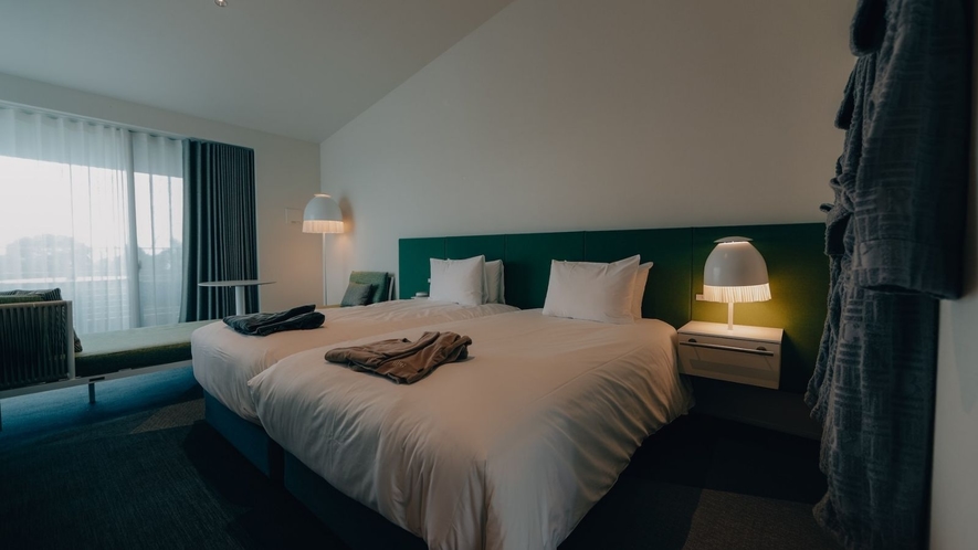 同じ間取りでシングルベッド2台設置してあるPOOL CLUB ROOM(TWIN)もあり、友達同士での宿泊におすすめです。