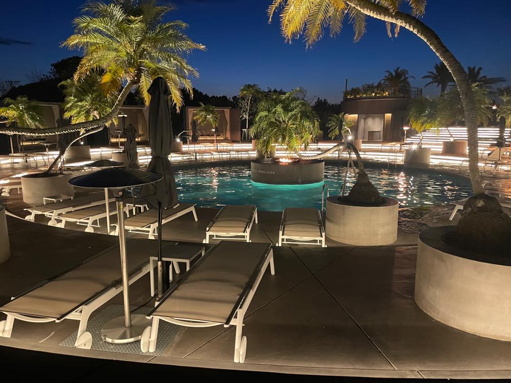 円形の「SIGNATURE POOL」はライトアップされ、中央に焚き火が灯されて昼間とはまた違った雰囲気に。
