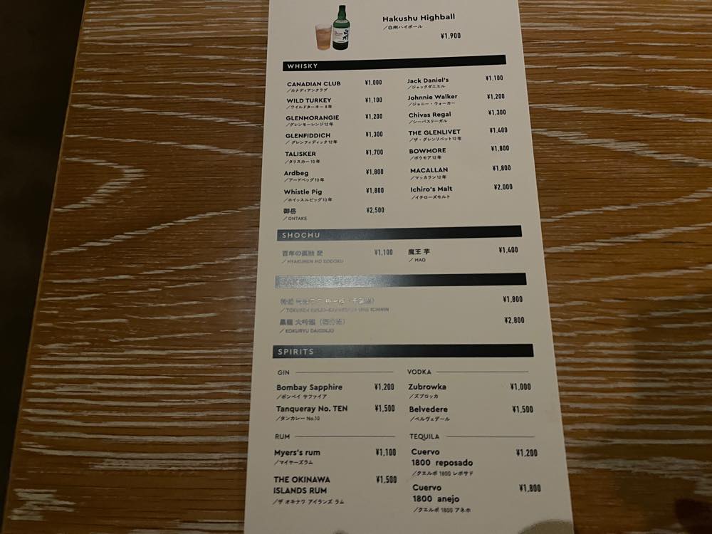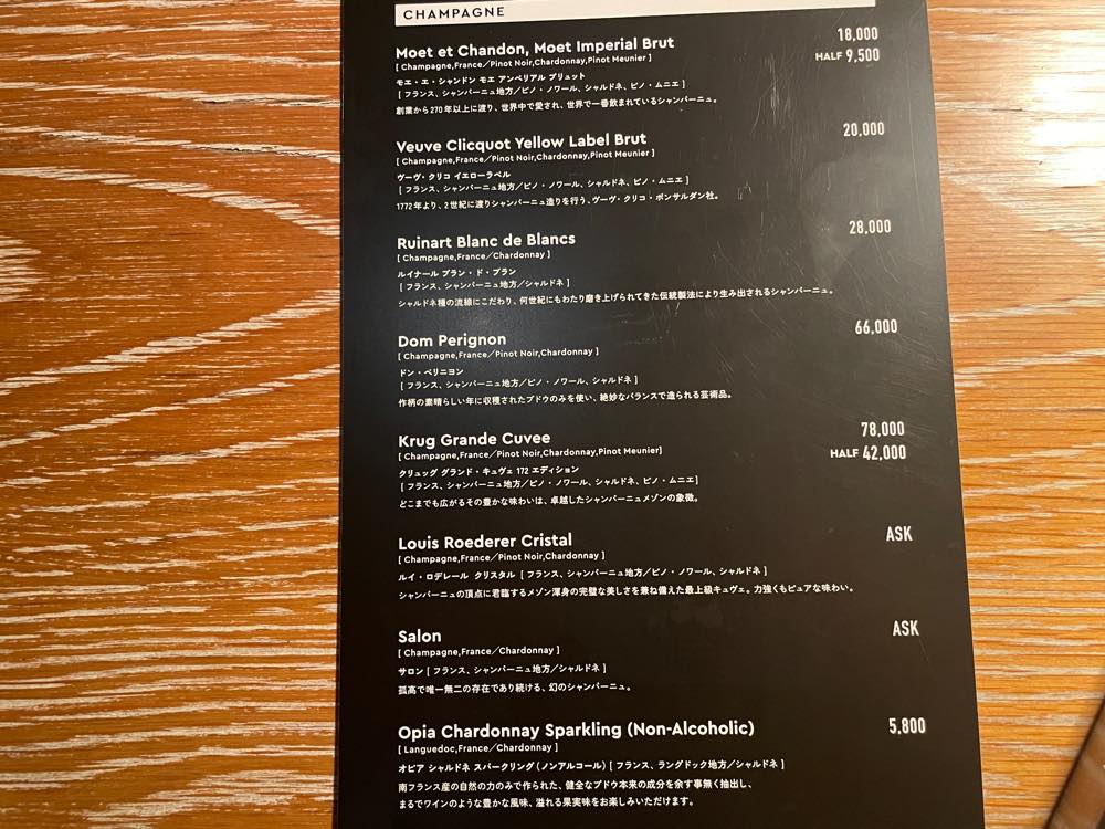 また、別途有料ではありますがナチュラルワイン(赤 / 白 / オレンジ)やシャンパン、ウィスキーのリストも充実していて、お酒好きな人も十分に満足できそう。