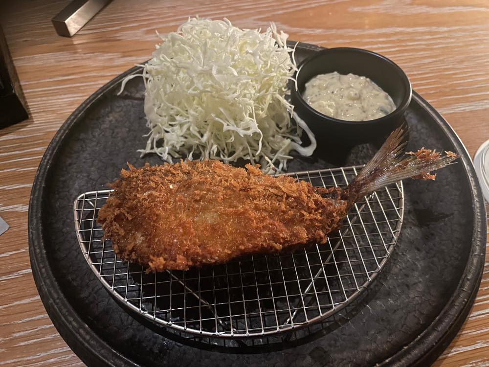 揚げたてサクサクで、タルタルソースとキャベツもついていて、あとはごはんがあれば一食分になりそうなボリューム感でした。