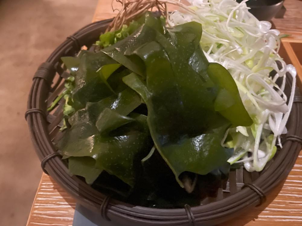 身が締まってぷりぷりの食感と香りがぎっりしり詰まったハマグリを頂きつつ、生わかめもしゃぶしゃぶで軽く加熱しながら頂きます。
