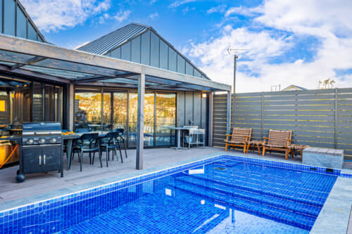 リビングの窓からはプールを一望できるので、水遊びをする子供を見守りながらソファーでのんびりくつろげるのも安心感があって嬉しいポイントです。