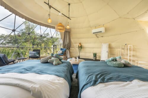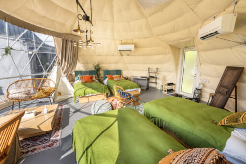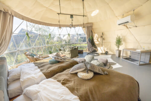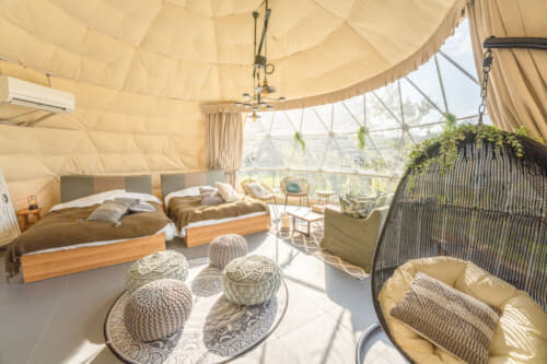 ラグジュアリー感とアウトドア感をどちらも楽しめる宿泊といえば、なんといってもグランピング。