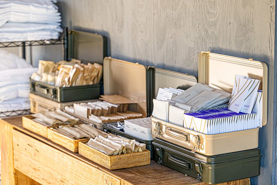 また、必要なものを自由にお部屋に持っていけるセルフアメニティーコーナーもあり、4種類のブランドのスキンケア製品や各種アメニティを好みで選ぶことができます。