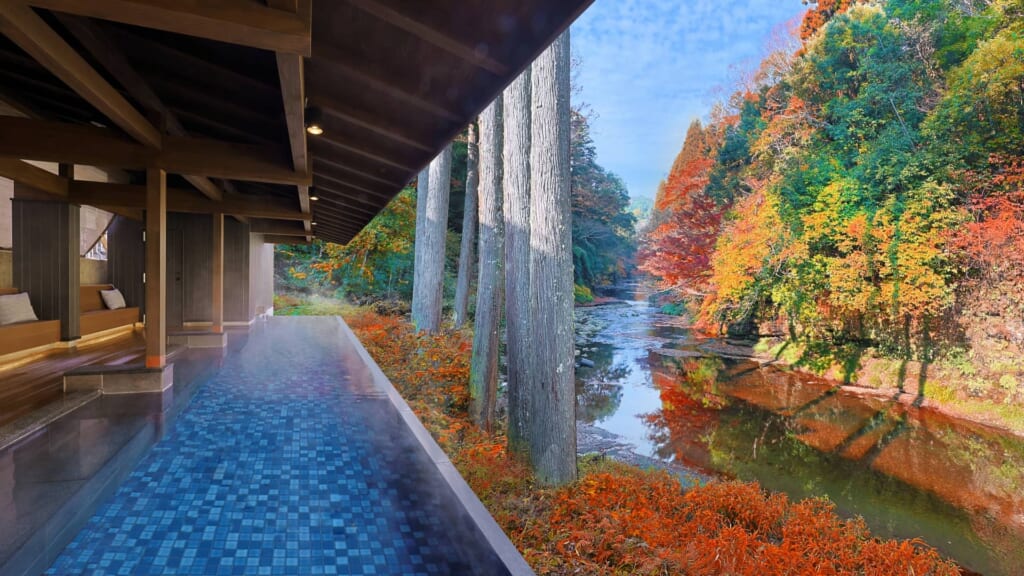 SHINRA YORO VALLEYはその養老渓谷の川沿いに位置する恵まれたロケーションで、川のせせらぎと四季折々の自然を露天風呂から堪能できる温泉リゾート。