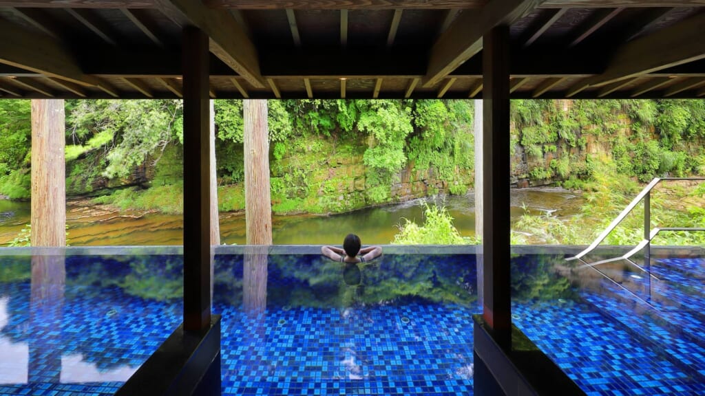渓谷に囲まれ、満点の星空と川の流れる音が心地よい露天風呂は、非日常感とラグジュアリー感が満載でとても贅沢。
