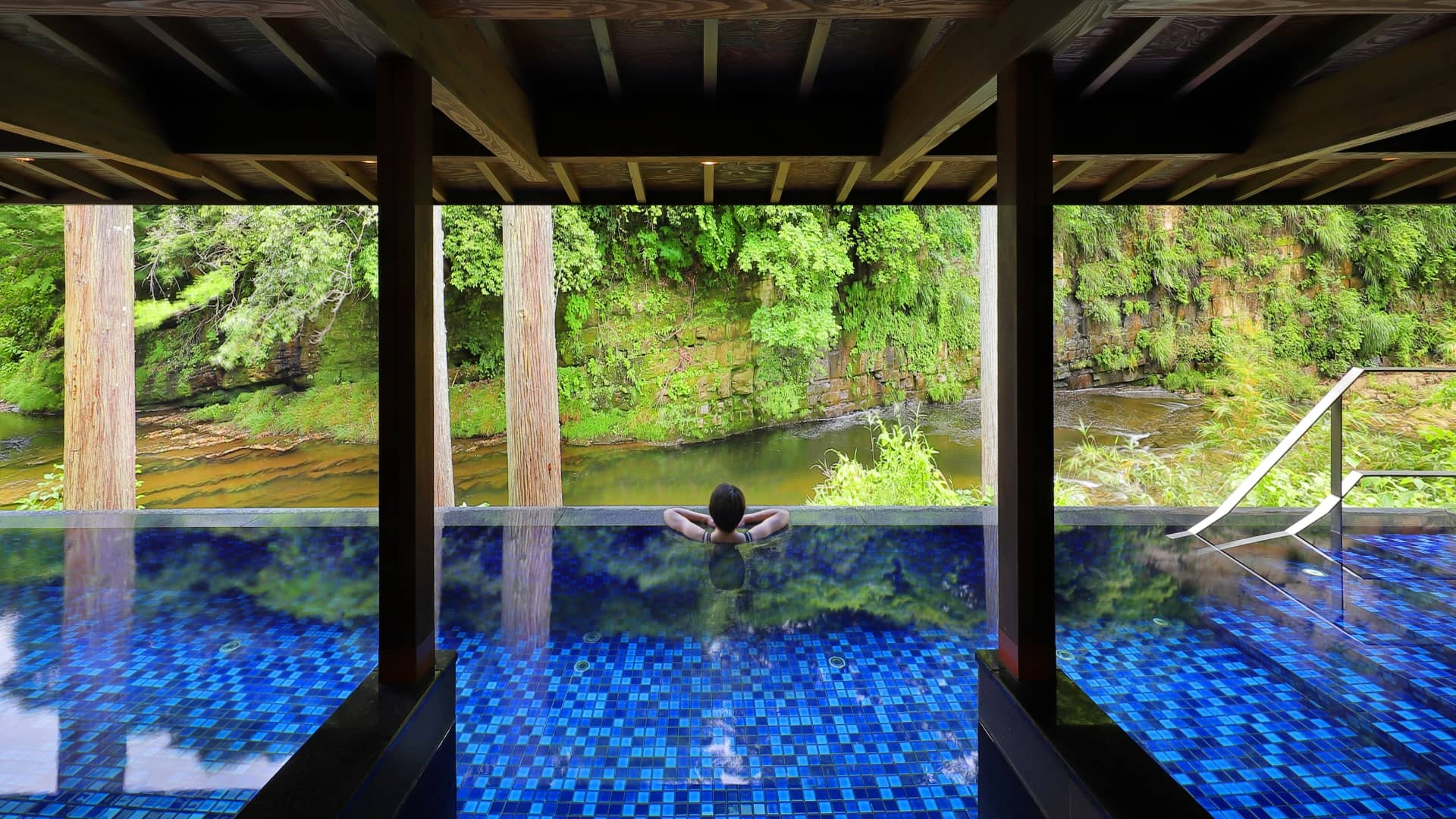 朝の清々しい空気の中、美しい渓谷を目の前に、まるで川で水浴びをしているような自然との一体感を味わいながらのスパ体験。