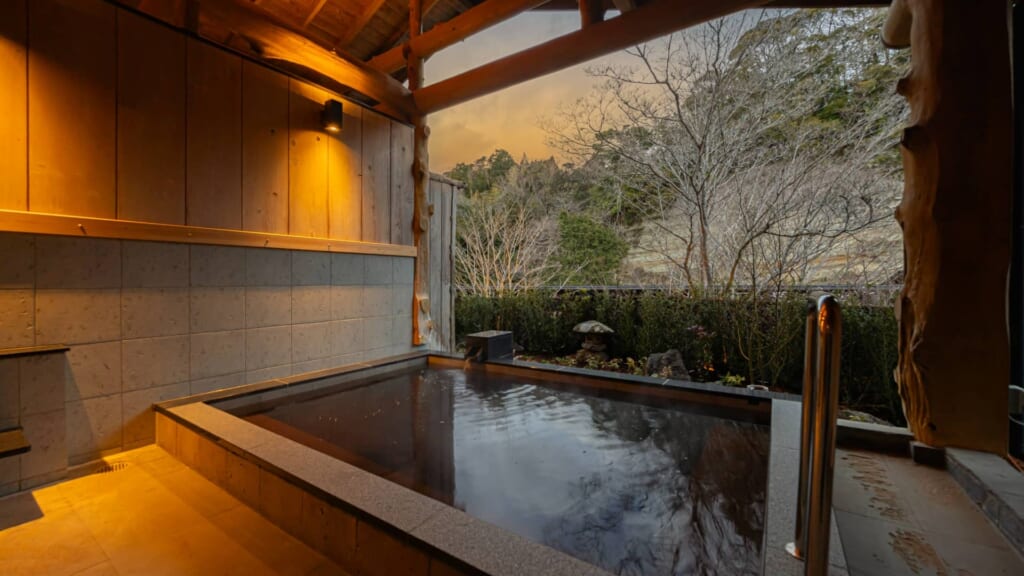 元々温泉旅館だった場所を増改築しリニューアル、2025年3月の開業以来、非日常のリトリートを求め誕生日や記念日などで利用する人も多い人気の温泉宿です。
