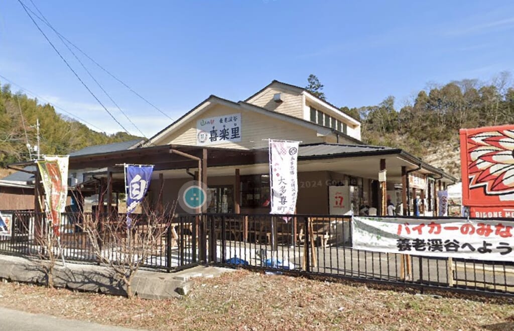 また、同じく徒歩6分の場所に山の駅 養老渓谷 喜楽里があり、ハンバーガーやお蕎麦・アユの塩焼きなどの食事やお土産・お酒・地元農家の新鮮な野菜などの販売も行っています。