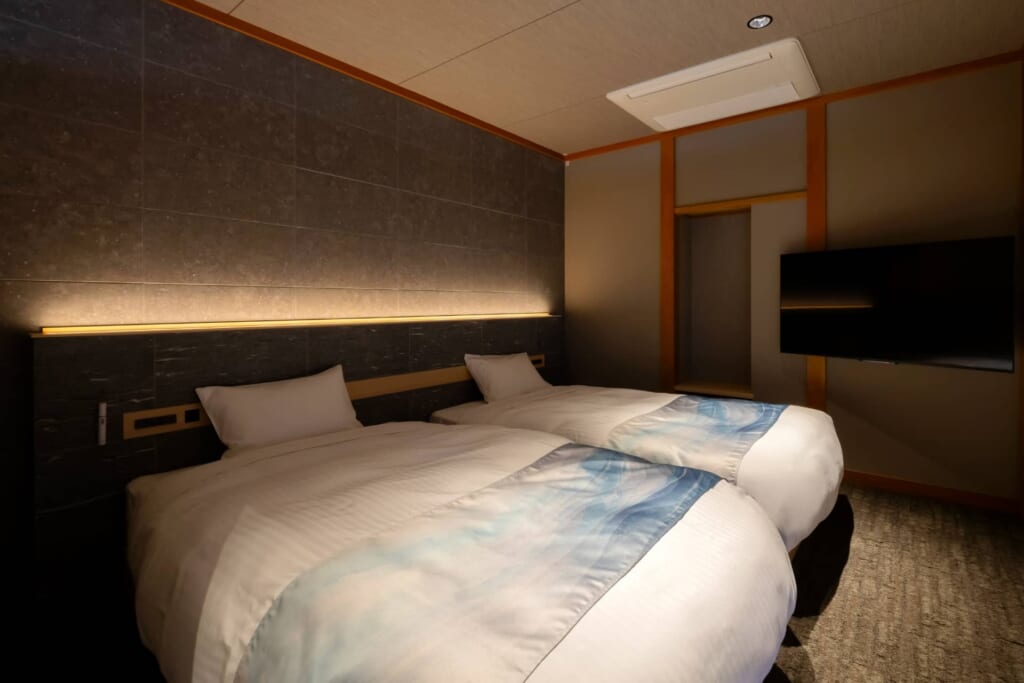 本館のスタンダードルームは、落ち着いた雰囲気の和の空間に快適なベッドを配置した、モダンスタイルのコンパクトなゲストルーム。