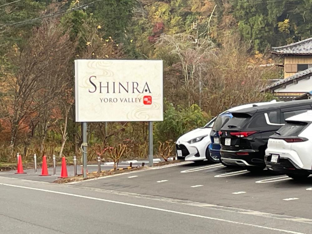 SHINRA YORO VALLEYは元々温泉宿だったところを改築・増築して作られた施設のため、建物前には広い駐車場も備わっています。