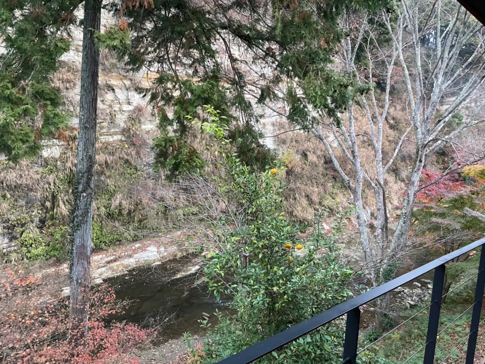 今回訪れたのも12月初旬でしたが、SHINRA YORO VALLEYから車で6分ほど先へ行ったところにある景勝地・粟又の滝や養老の滝展望台でもまだちらほらと赤く色づいた木々を見ることができました。