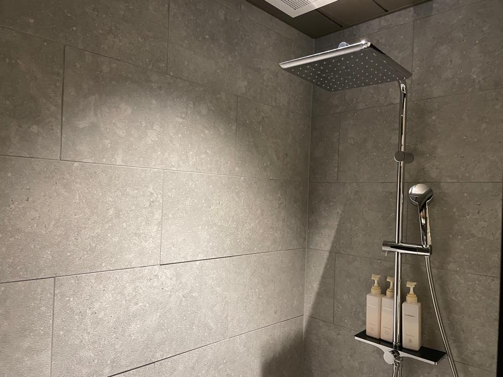 最大定員が3名のお部屋ですが、洗面台が2つ設置してあるのも嬉しいポイントで、シャワーブースもシックで落ち着いた雰囲気にまとまっています。